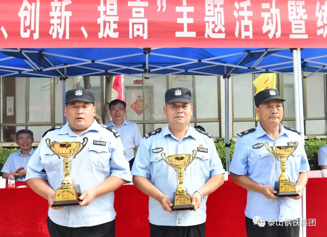 在热烈的掌声中,王董事长为保卫部“学创”练兵大比武中表现优异的巡逻队、护卫一中队、护卫二中队颁发了奖杯。