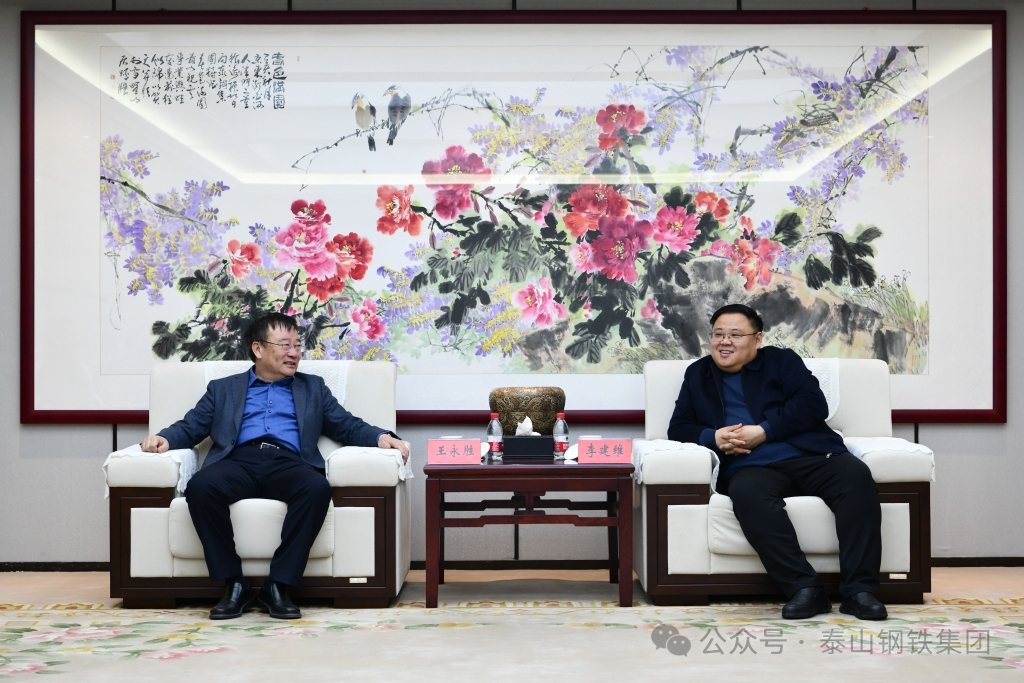 3月25日,张家洼街道党工委书记李建维带队来泰山钢铁集团调研。集团董事长、党委书记王永胜在办公楼贵宾室热情接待了李建维一行,并进行座谈。