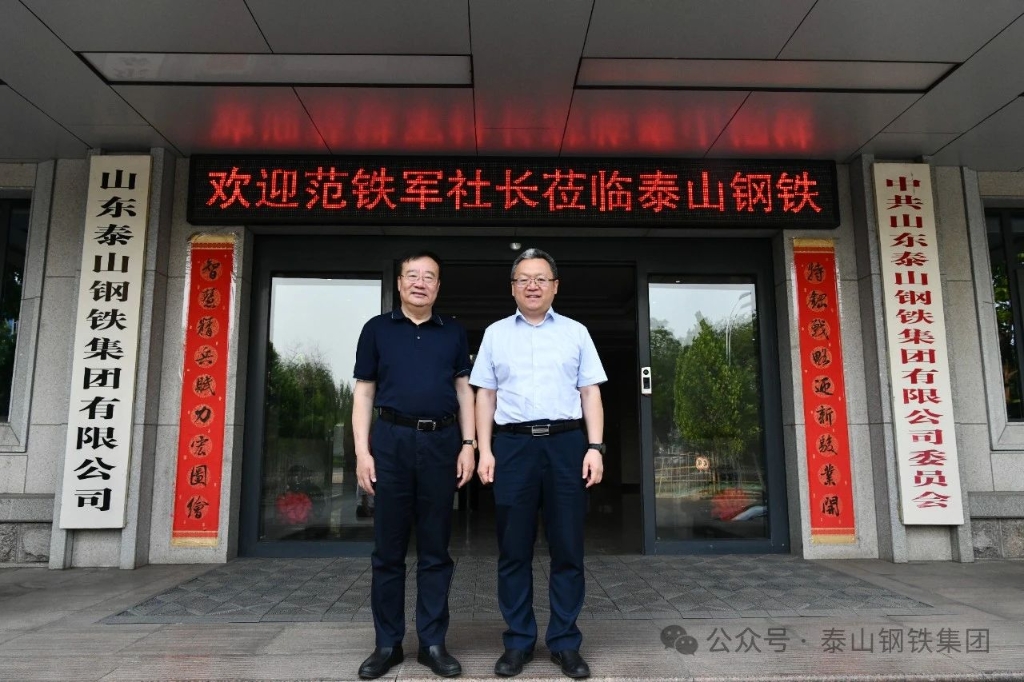 5月30日,中国冶金报社党委书记、社长范铁军到泰山钢铁集团调研指导。集团董事长、党委书记王永胜热情接待了范铁军一行,并与客人围绕宏观经济形势、行业发展趋势、企业管理、产业政策、新质生产力等话题进行了深入、愉快地座谈与交流。