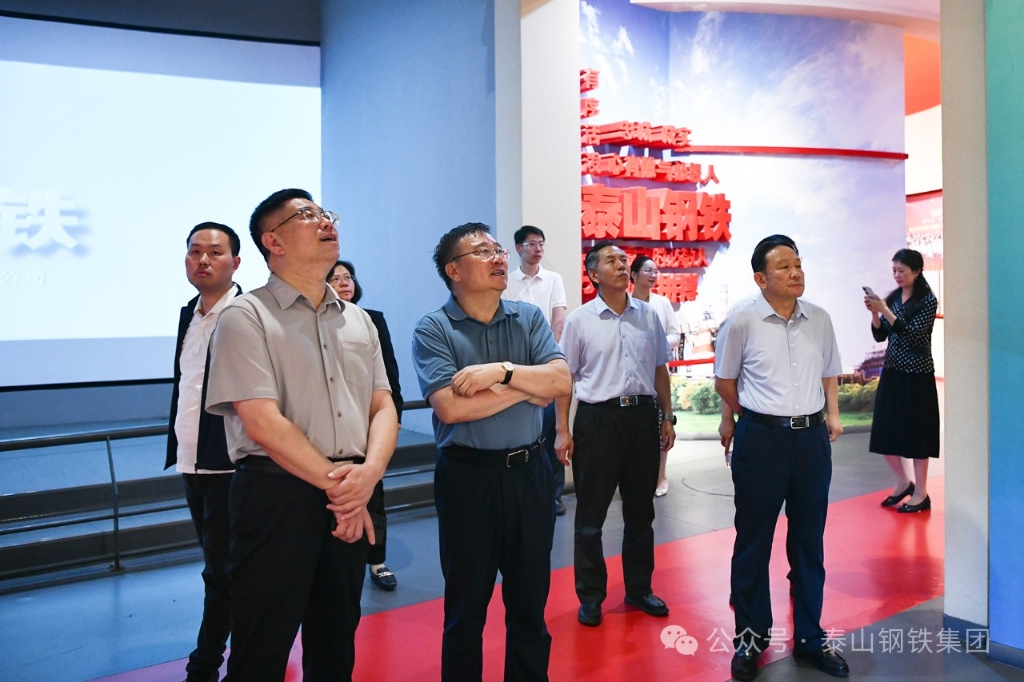 6月12日,北京科技大学党委副书记、校友总会副会长孙景宏带队到泰山钢铁集团参观调研。集团董事长、党委书记王永胜热情接待了孙景宏一行,并陪同客人们参观了泰嘉不锈钢冷轧板材深加工项目、泰钢精神主题展览馆。